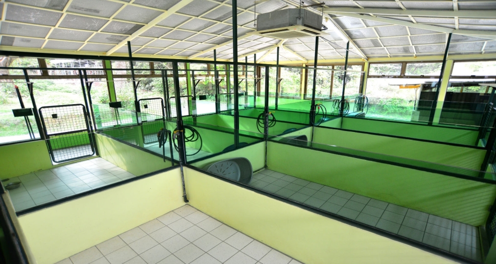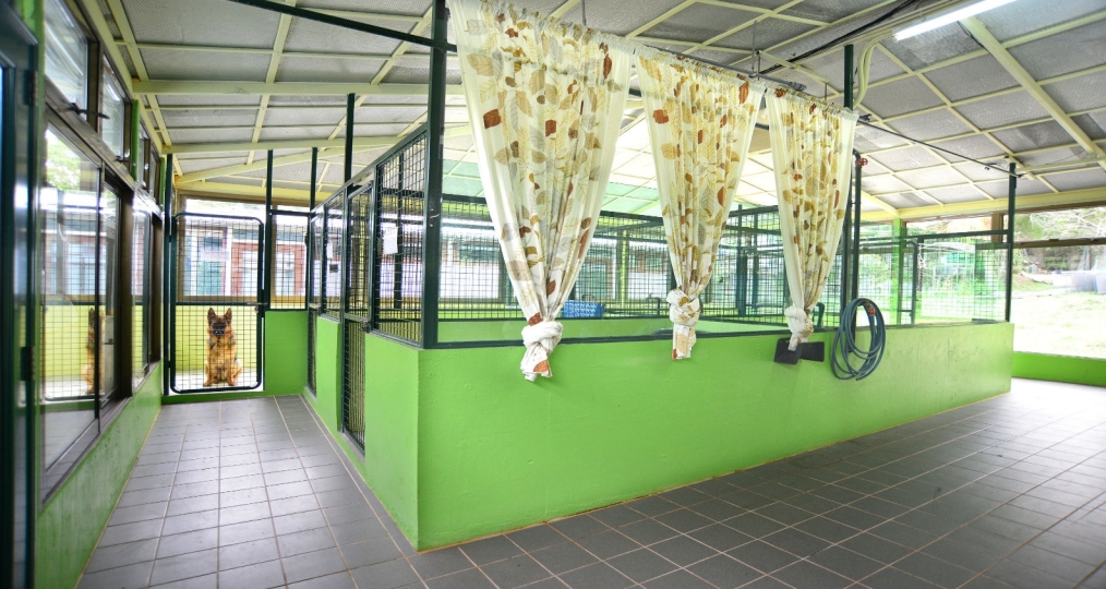 這充滿現代氣息的犬舍自2013年春季落成啟用以來極受歡迎。大片落地玻璃的設計確保了室內的採光,也增加空間感。寄宿犬隻能夠沐浴在柔和的陽光下小休,或是觀看室外的美景。犬舍更有超寬通道通往運動場,方便犬隻進入花園遊玩。夏天有冷氣設備冬天有暖爐。